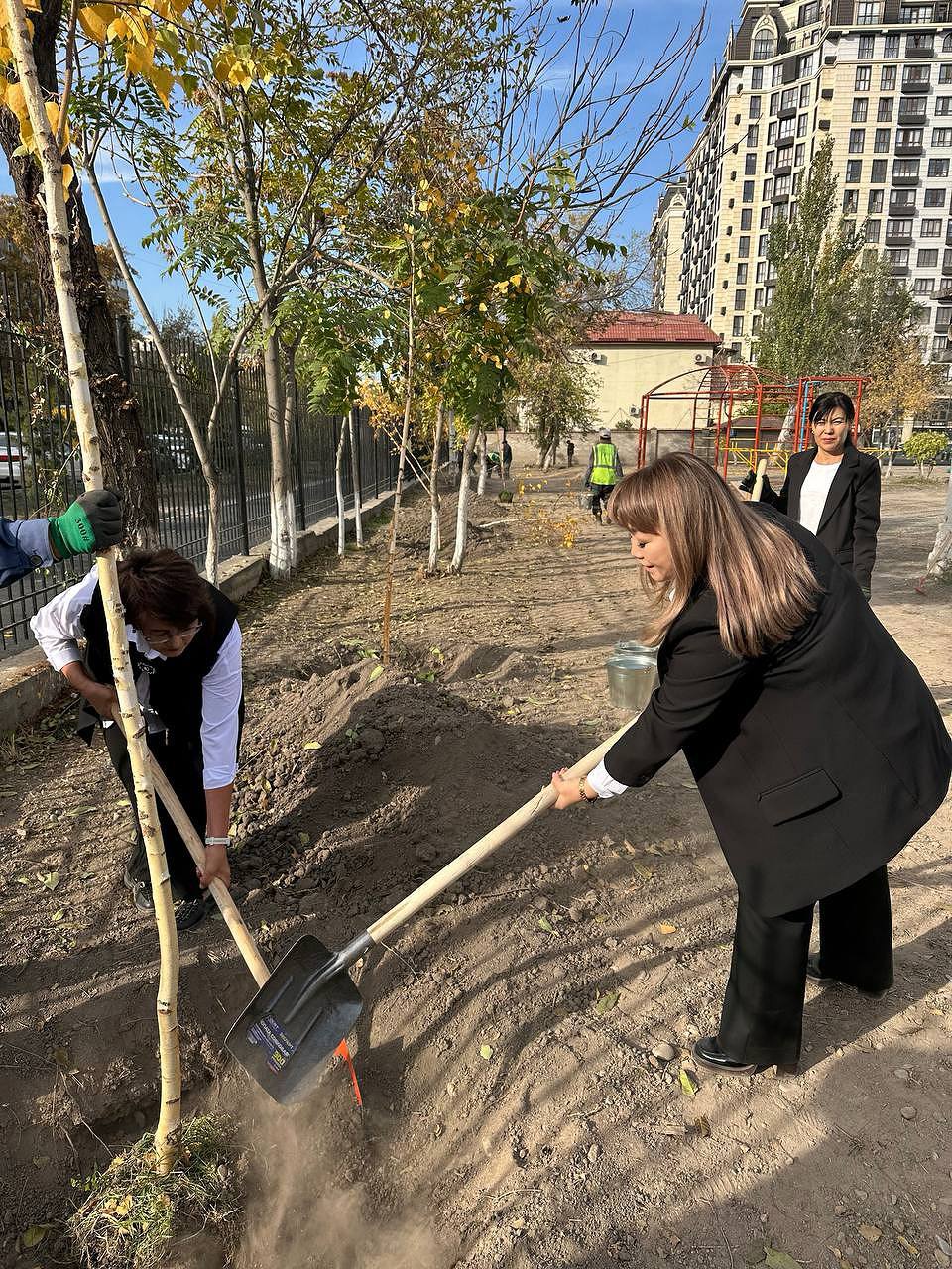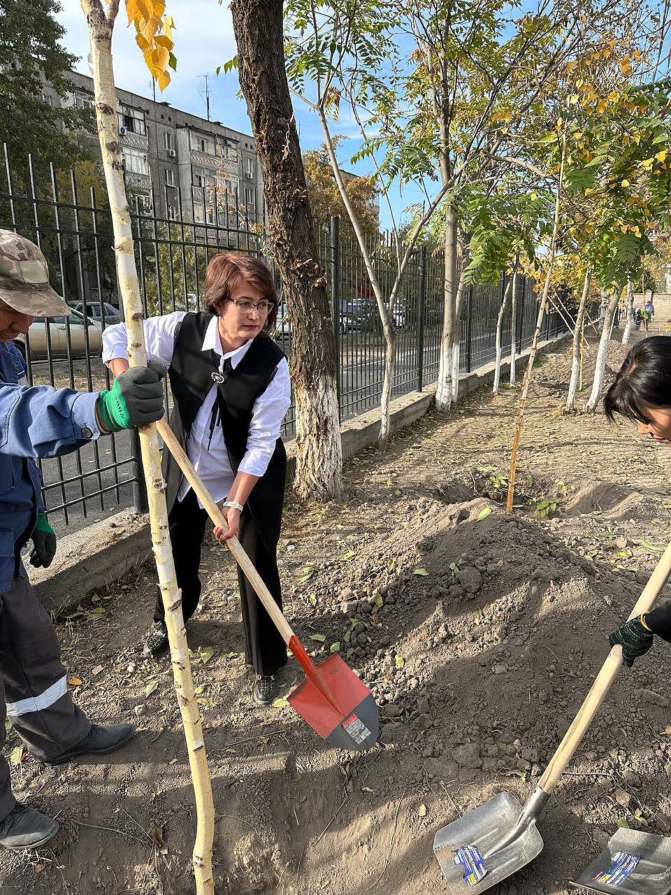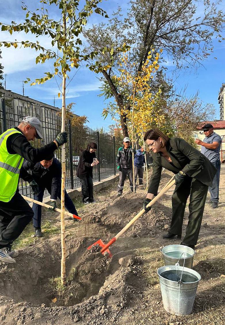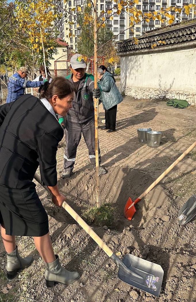 Биргелешкен аракет менен мектебибиздин көркү жана сыймыгы боло турган жаш бак-дарактар отургузулду.